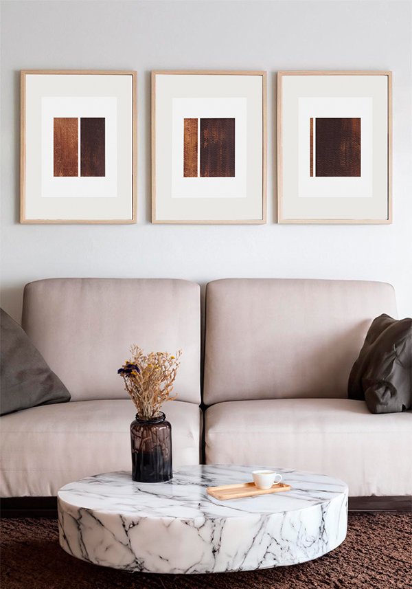 The artwork is printed on high-quality fine art paper, selected for its subtle texture and ability to enhance depth and tonal richness. The matte finish avoids reflections and reinforces the material quality of the image, resulting in an elegant, timeless piece designed to integrate harmoniously into contemporary interiors. Ideal for spaces seeking warmth, calm, and a refined abstract expression.