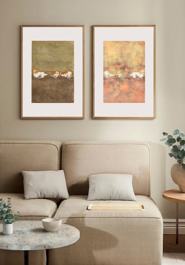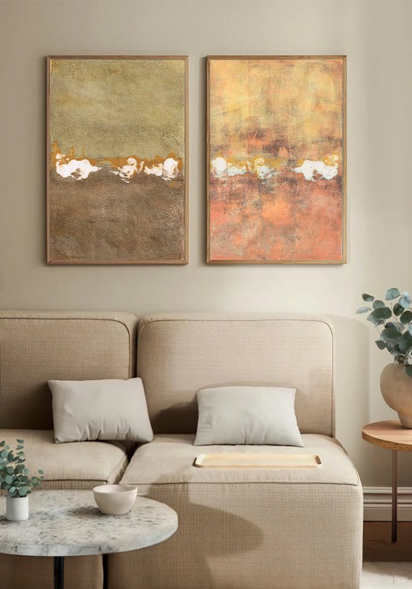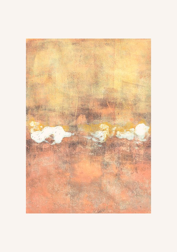 Horizons is an abstract artwork that suggests an undefined landscape, an open space where the eye can pause and rest. Layers of earthy and golden tones, combined with soft light accents, form an imprecise, almost ethereal horizon that invites contemplation.