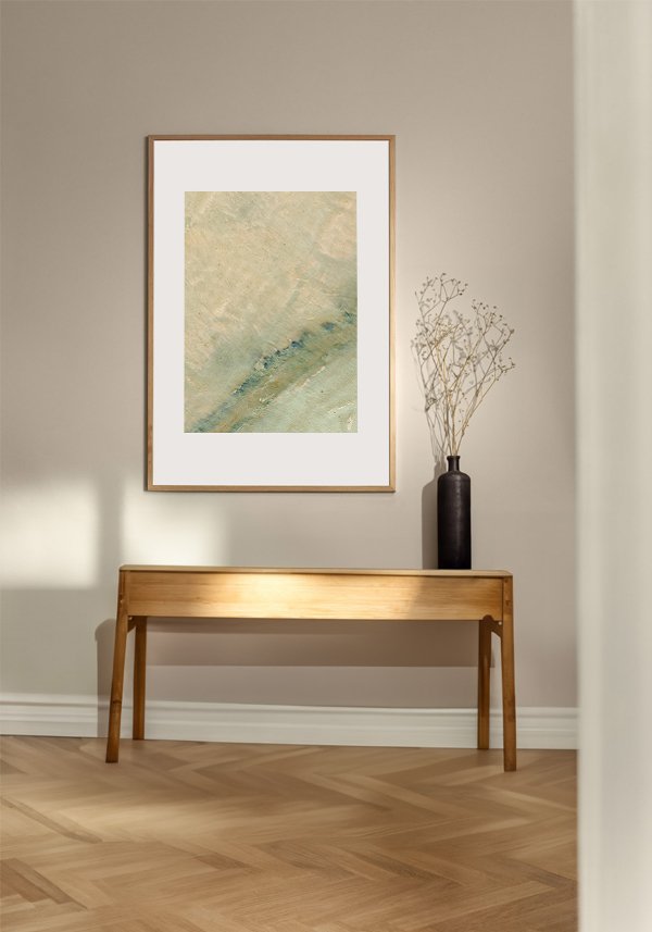 Printed on high-quality fine art paper, the artwork features a matte finish and refined texture that enhance tonal softness and material depth without reflections. The result is a timeless and tranquil piece, designed to integrate seamlessly into modern interiors, bringing a calm Mediterranean presence, visual lightness, and understated elegance to both residential and professional spaces.